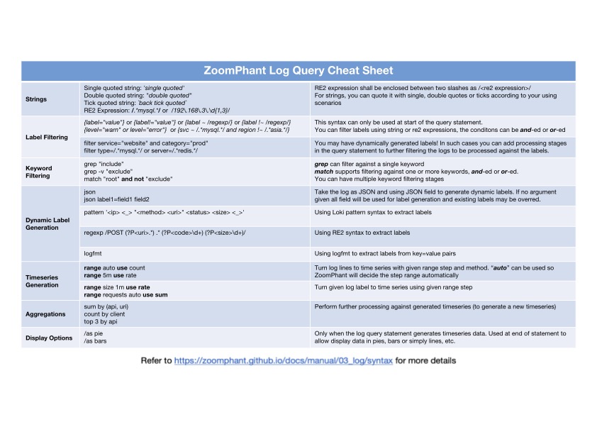 For a quick reference, you can refer to Log_Query_CheatSheet
